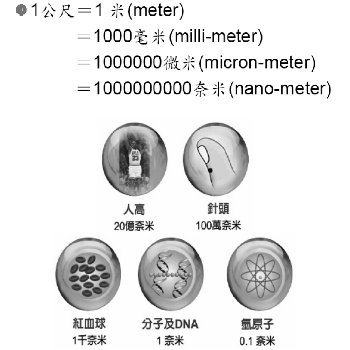 1奈米=十億分之一米,約為分子或DNA的大小。